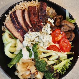 I got the Sticky Chicken and Cashew Salad without the cashews (allergy) and dressing on the side. I really liked the chicken thigh on the salad, but there was a whole lot of cabbage mix on there. I was expecting spring mix or some lettuce or spinach for the "power mix" and "gourmet greens". Also, the broccoli did not seem to be cooked enough and was really hard to bite into. However, I ate the whole thing as two meals and still enjoyed all the flavors of the salad.